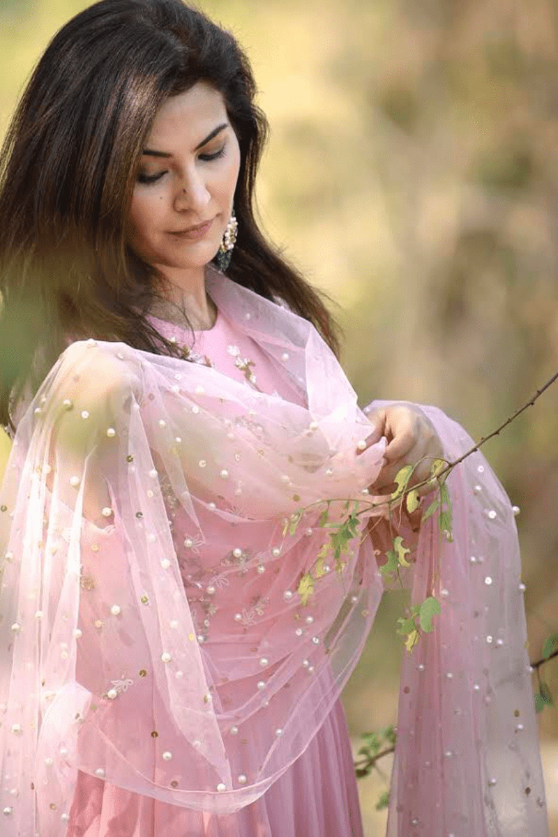 Featuring a blush pink anarkali with pearls and sequins embroidered all over the yoke and paired with a dupatta.